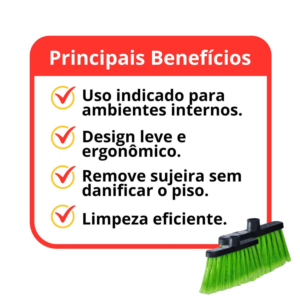 Indicada para uso em ambientes internos, essa vassoura é ideal para pisos frios, cerâmicas e áreas secas. Seu material resistente proporciona mais durabilidade e eficiência na limpeza.