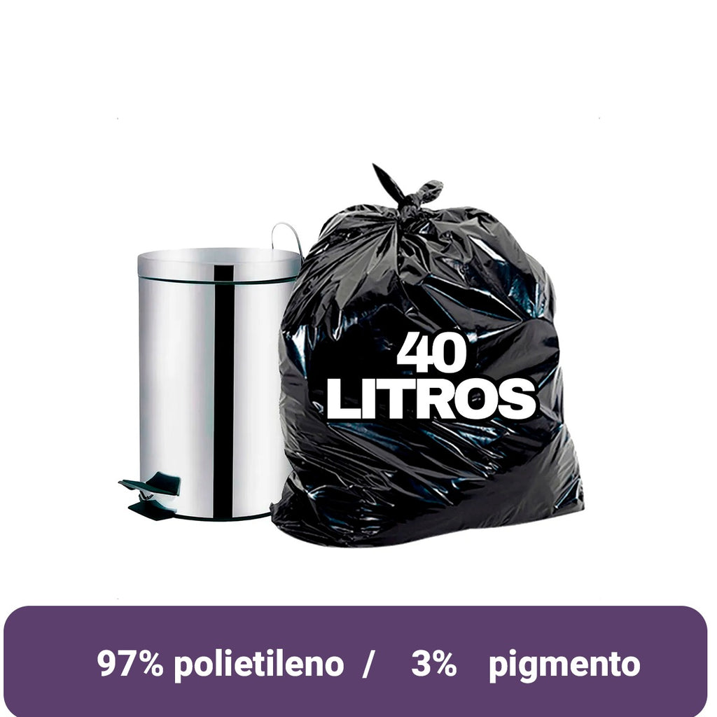 Saco de Lixo 40L Resistente - Suporta 10kg - Solda Contínua - 100 Unidades