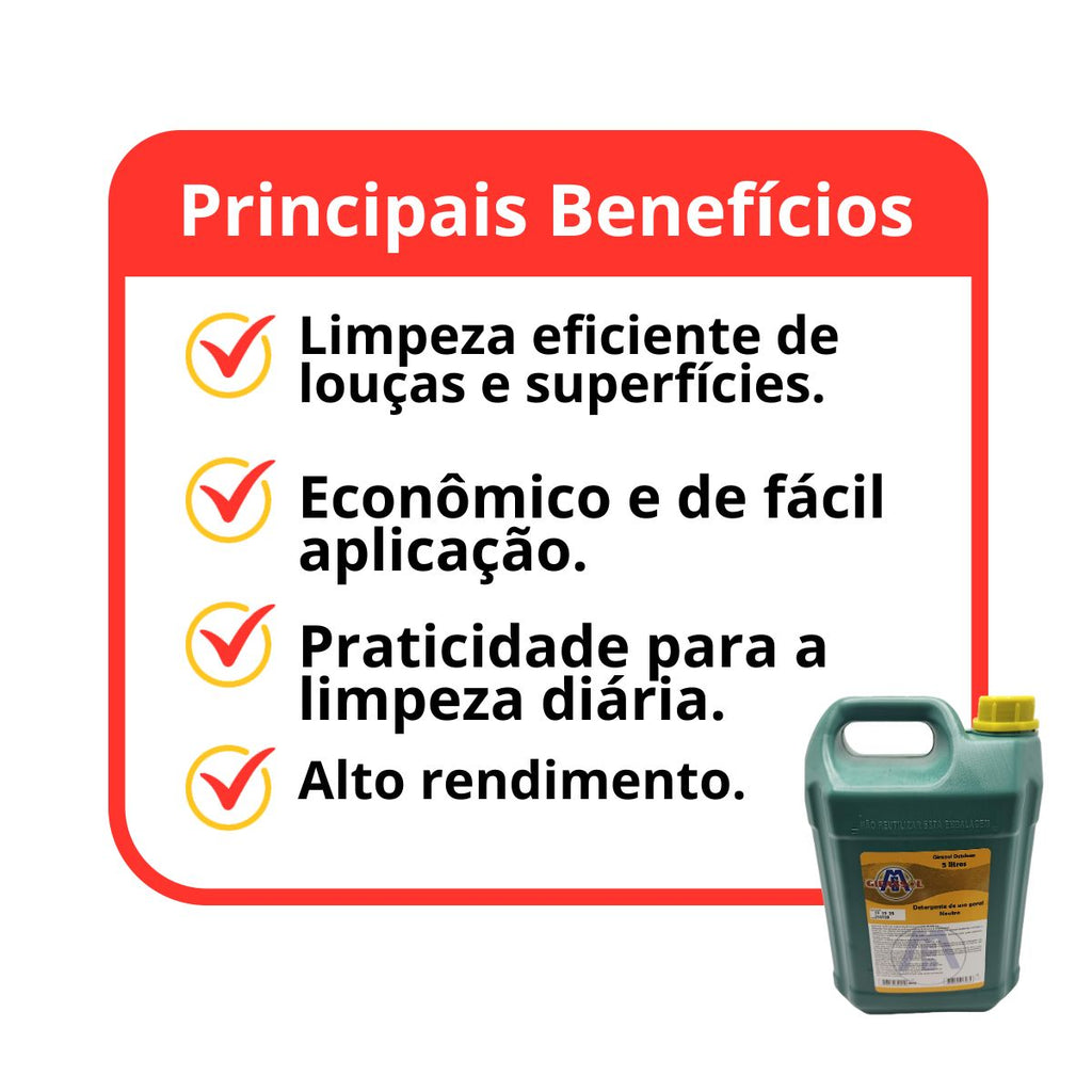 O Detergente Neutro Girassol 5L é ideal para remoção de gorduras e sujeiras, sendo perfeito para louças e limpeza geral de superfícies.