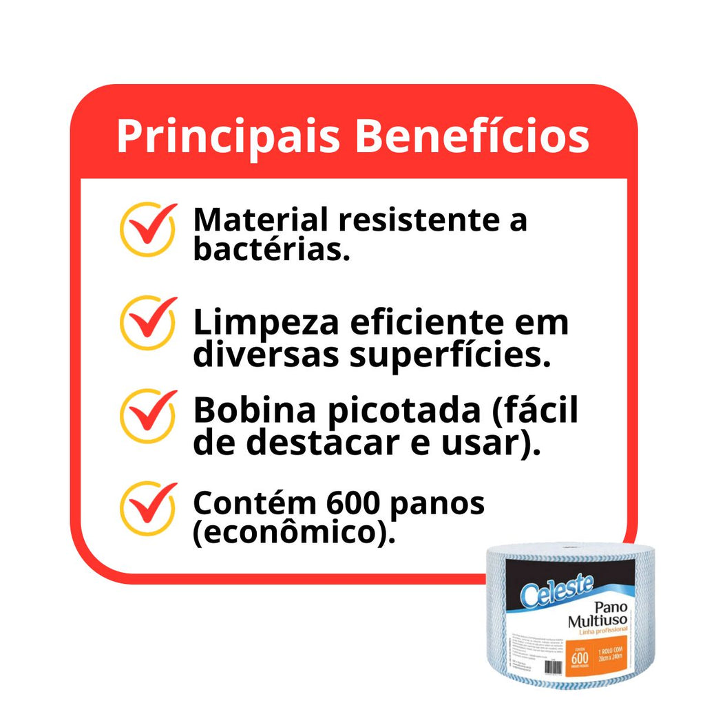 Os Panos Multiuso Celeste oferecem alta qualidade, absorção eficiente e resistência, sendo ideais para uso doméstico, industrial, comercial e alimentício. A bobina picotada facilita a utilização em tarefas de grande volume.