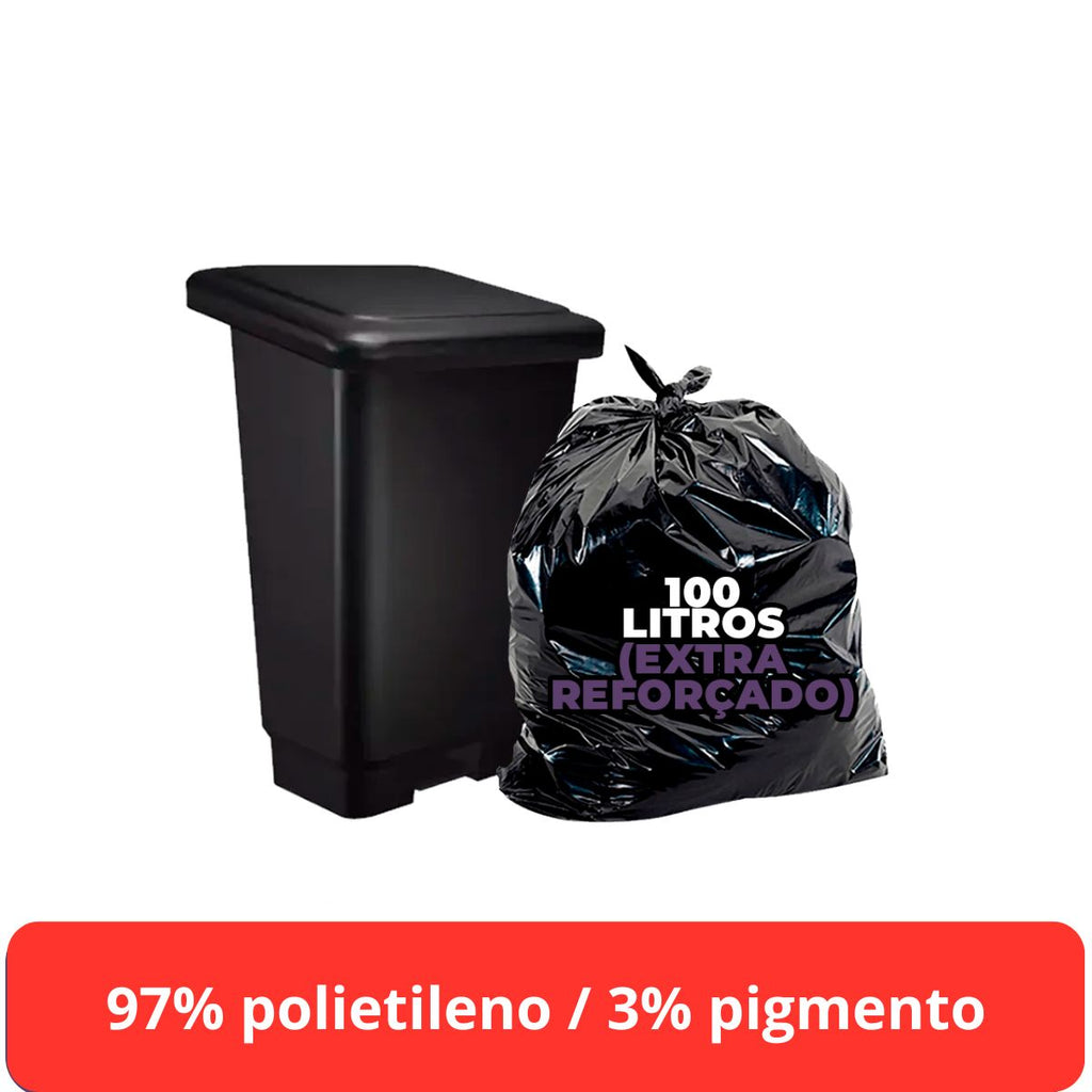 Saco de lixo preto 100lt 90x95cm (BL3) c/ 100 unidades - Suporta até 40kg